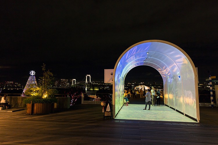 夏休み時期ということもあり子供に人気の高い「恐竜」をテーマに、「恐竜と遊ぼう!タッチ de ジュラ紀」を開催。トンネル形のドーム内側には恐竜が生息していたジュラ紀および白亜紀の世界が描かれ、映像に触れることで恐竜が威嚇してきたり、起きて走り出したりとインタラクティブな仕掛けを施しました。