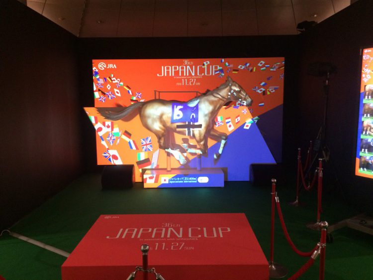 ジャパンカップPRイベントブース内にて展示中のProjectionMappingフォトスポットの映像及びシステム制作を担当致しました。