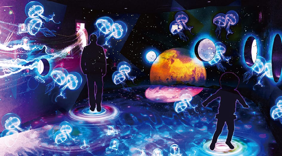 「月」をテーマにクラゲたちが優雅に舞い、空間全体が様々なクラゲに包み込まれる演出に。