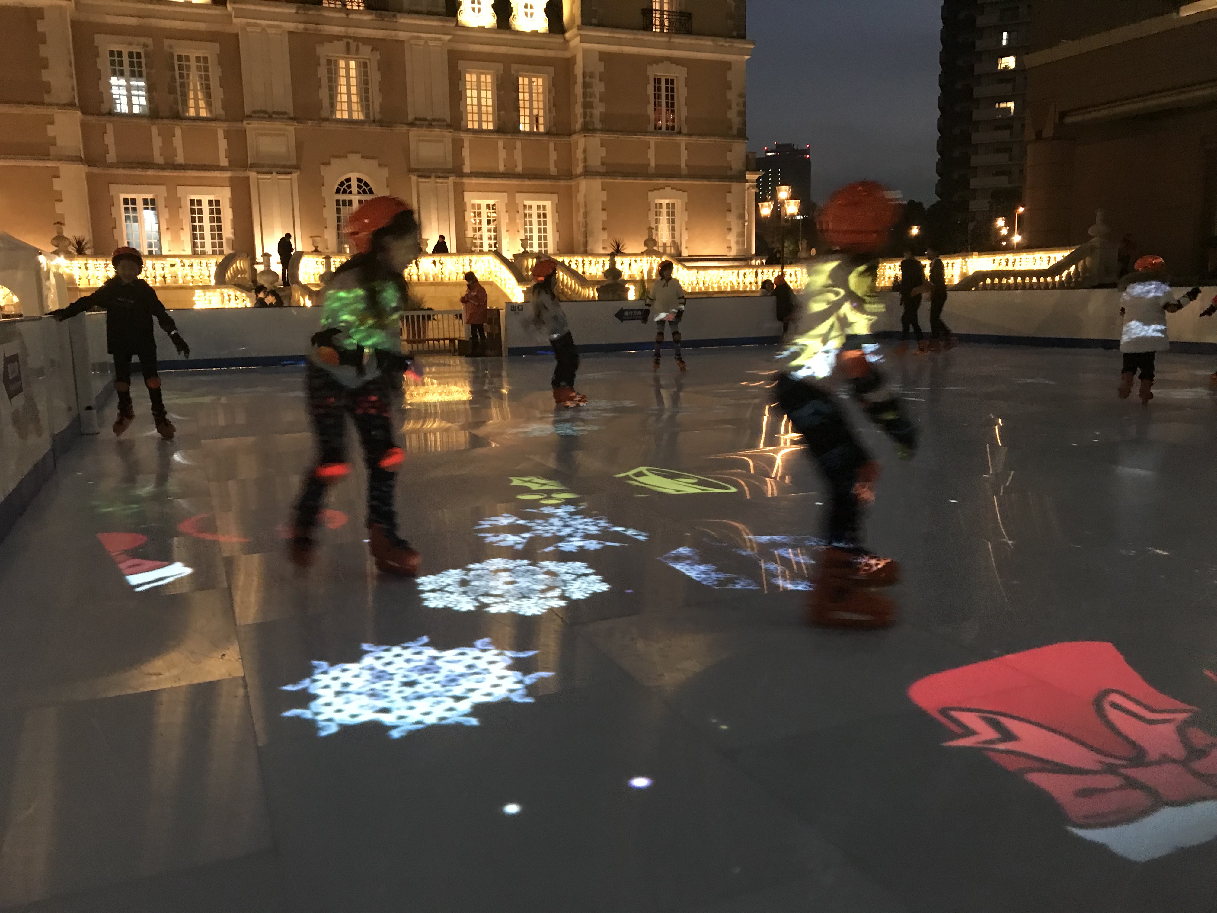 夜間には、滑走する人の動きに合わせて変化するインタラクティブな光と映像のスケート体験が楽しめます。