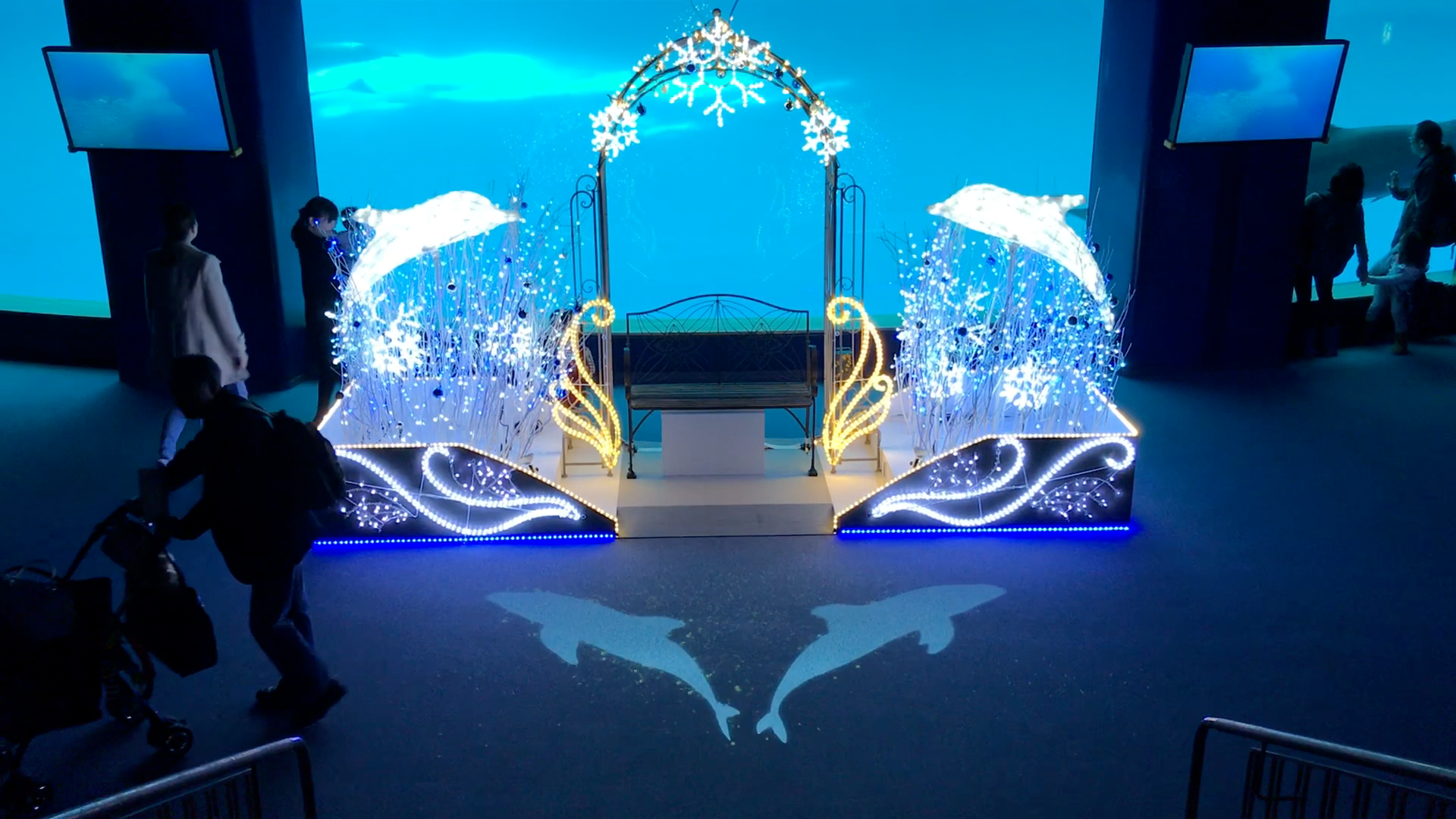 アクアワールド茨城県大洗水族館のイルミネーションフォトスポットシステムを担当しました。