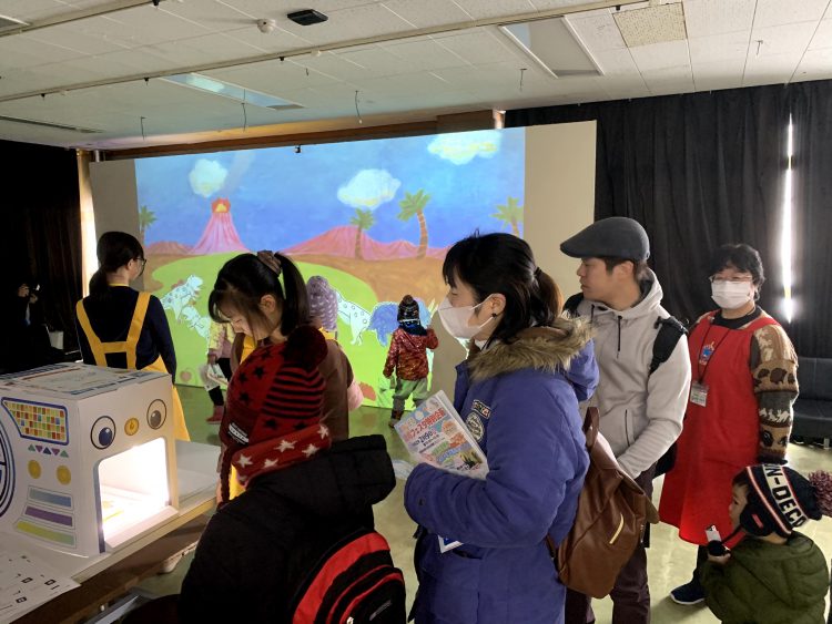 室蘭では初のインタラクティブコンテンツ開催という事で地域の皆様の関心もとても高く、当日は多くのお客様が来場され「うごくぬり絵」を楽しんで頂きました。